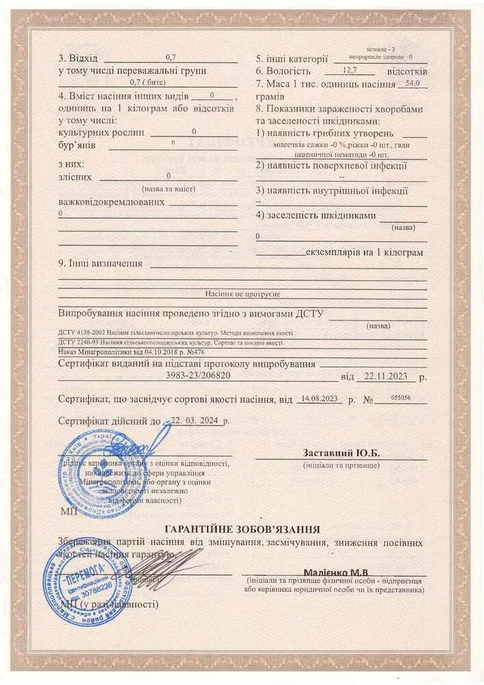 Автори сорту: Голік О. В., Кабацюра А. А., Маркова Т. Ю., Панченко І. А.
